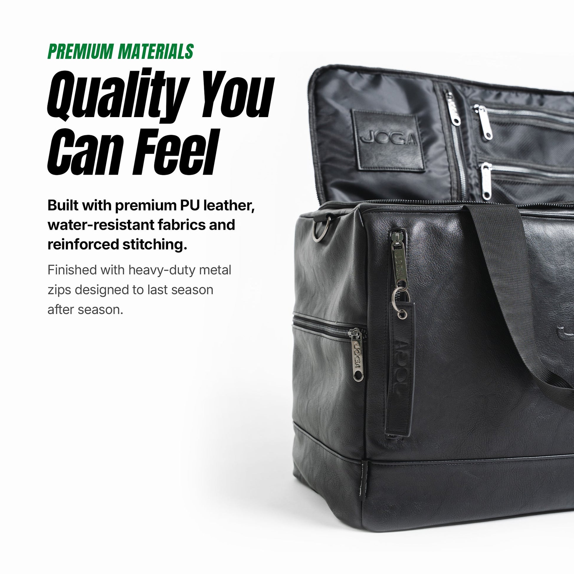 Built with premium PU leather, water-resistant fabrics and reinforced stitching. Finished with heavy-duty metal zips designed to last season after season