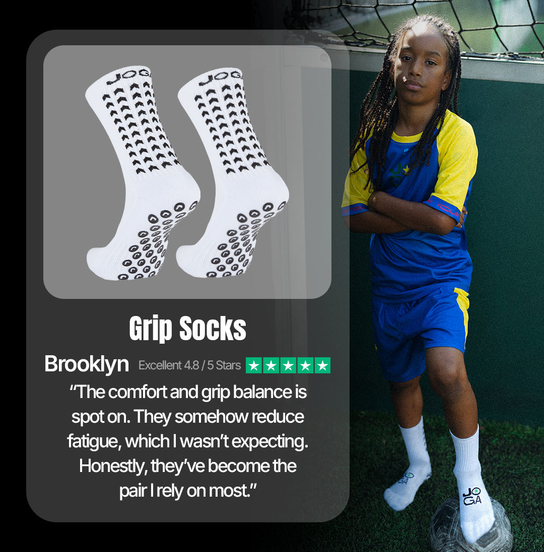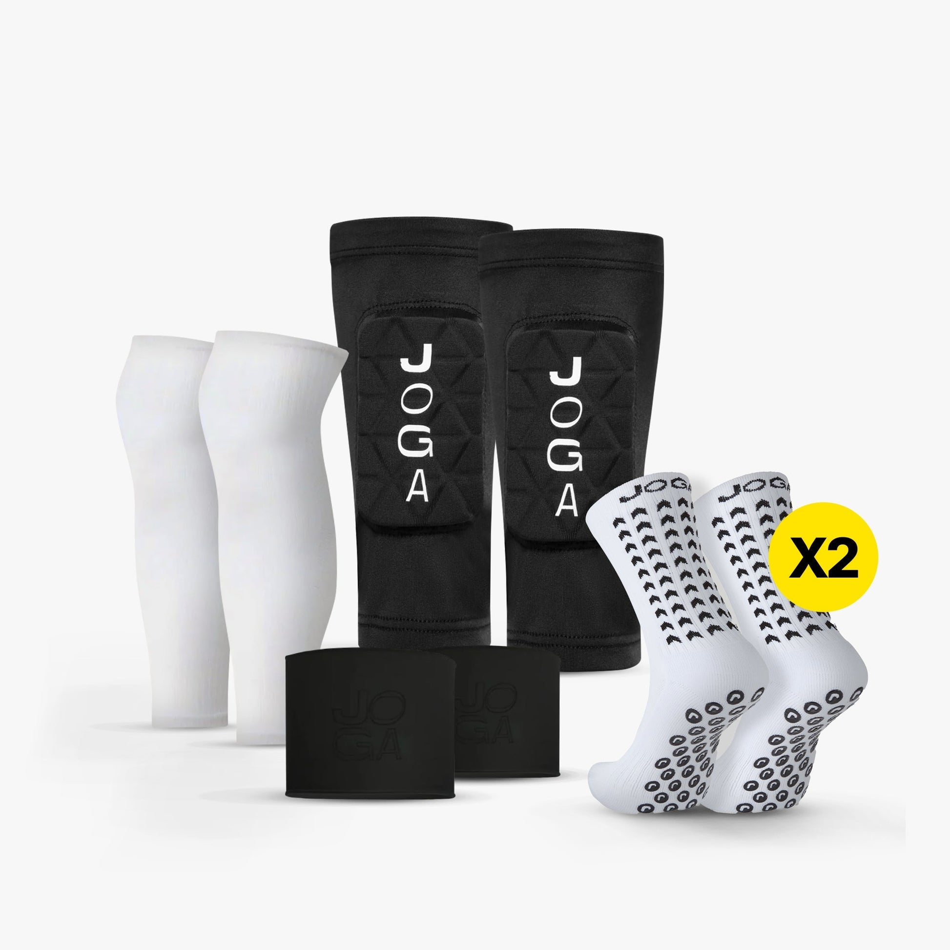 The bundle includesshin pad sleeves, grip tapes, sock sleeves, and 2 pairs of performance grip socks. Everything you need to stay locked in from warm up to full time.